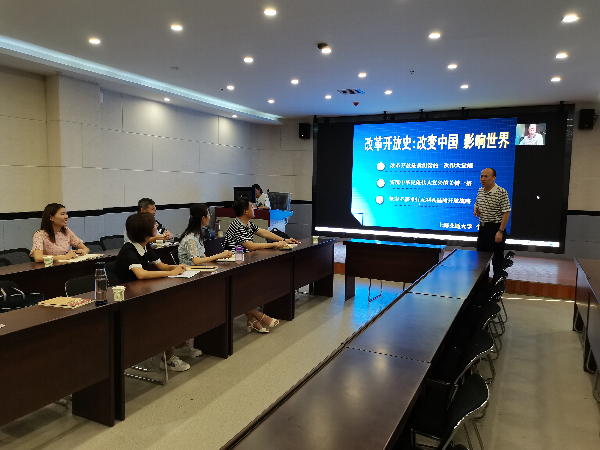 此次活动紧密结合当前“四史”学习的要求,以改革开放史为重点,以党员交流心得体会为途径,结合合唱红歌的方式表达了全体党员对党真挚的热爱之情。全体党员在活动中聆听了中国社会科公司刘国新教授和上海交通大学李梁教授的“改革开放史教育与高校思政课教学创新”部分视频教学内容,学习了习近平《论中国共产党历史》,研讨了如何将改革开放史融入高校思政课教学从而取得更好教育实效的问题。梁鹏教授代表支部老教师畅谈了自己的教学经验,向年轻教师提出了希望和要求,鼓励年轻教师在科研和教学方面取得更大的进步。在欢快的氛围中,全体女党员饱含深情地合唱了《春天的故事》,表达了对邓小平同志为代表的老一辈无产阶级革命家的深深缅怀,而后全体同志合唱了《没有共产党就没有新中国》和《国际歌》向中国共产党建党百年致礼。