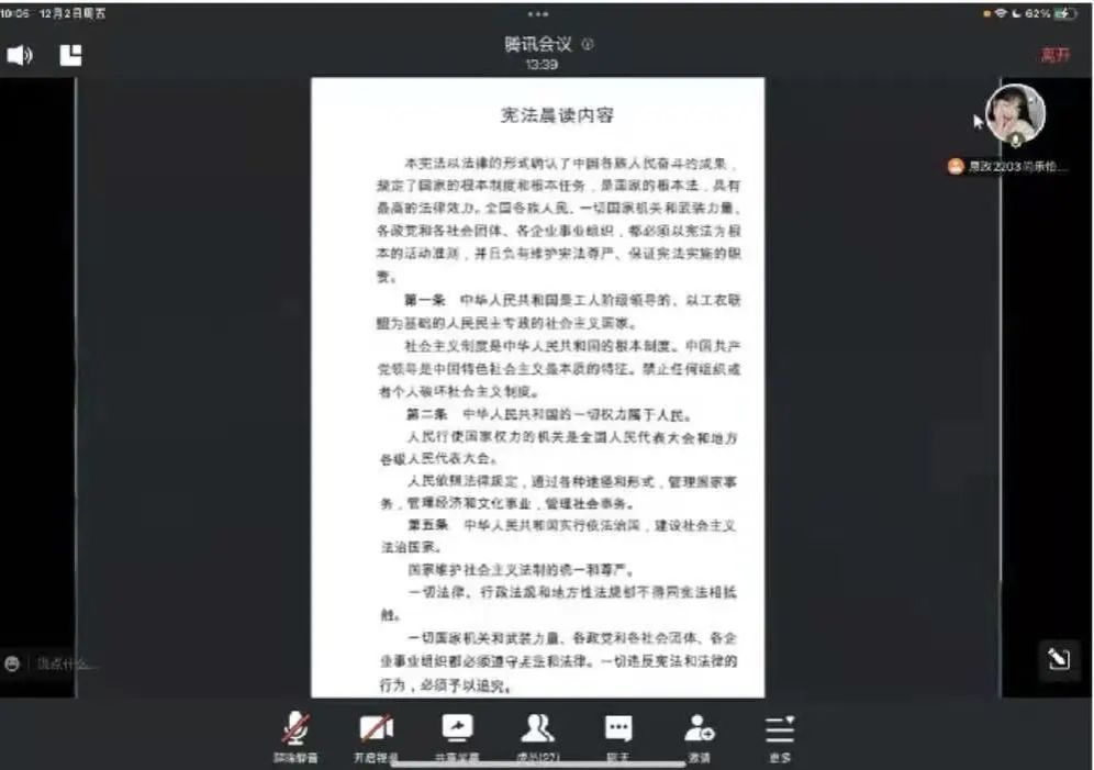 为了加强宪法宣传教育,弘扬宪法精神,促进员工积极学习宪法,伟德bv国际体育于12月2日于22级各班级开展了宪法晨读活动。